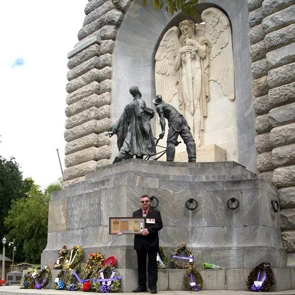 Commemorating the service and sacrifice of Brian and Colin Bayly at the South Australia National War Memorial in Adelaide on Remembrance Day 2014.