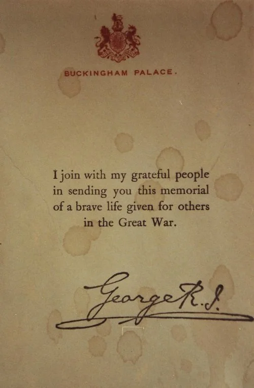 This is the King’s Message which accompanied the Commemorative Scroll, bearing the facsimile signature of King George V.