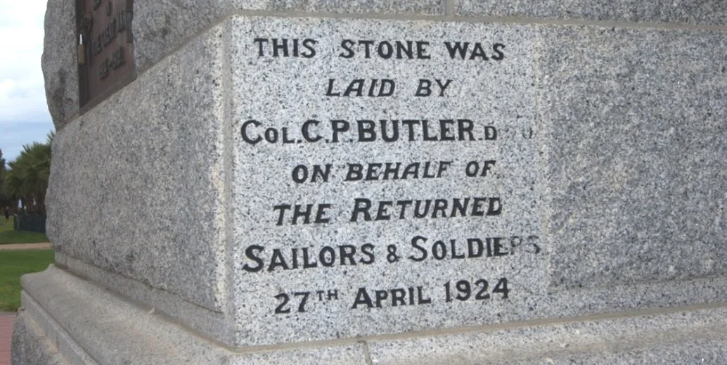 On 27 April 1924, four foundation stones for the Semaphore War Memorial were laid at the approach to the jetty – including this stone laid by Colonel Charles Philip Butler DSO (ex-43rd Battalion AIF) on behalf of the returned sailors and soldiers such as Private Alexander Carr.