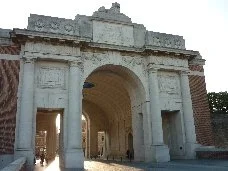| The Menin Gate Memorial (so named because the road led to the town of Menin) was constructed on the site of a gateway in the eastern walls of the old Flemish town of Ypres, Belgium, where hundreds of thousands of allied troops passed on their way to the front, the Ypres salient, the site from April 1915 to the end of the war of some of the fiercest fighting of the war. | |