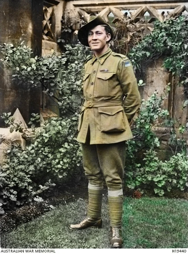 Recolourised Photo of Informal outdoors portrait of Corporal Phillip Davey VC MM, of 10th Battalion, AIF.