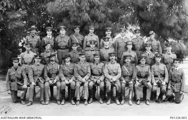 Group portrait of the original officers of the 10th Battalion prior to leaving Adelaide for Egypt.