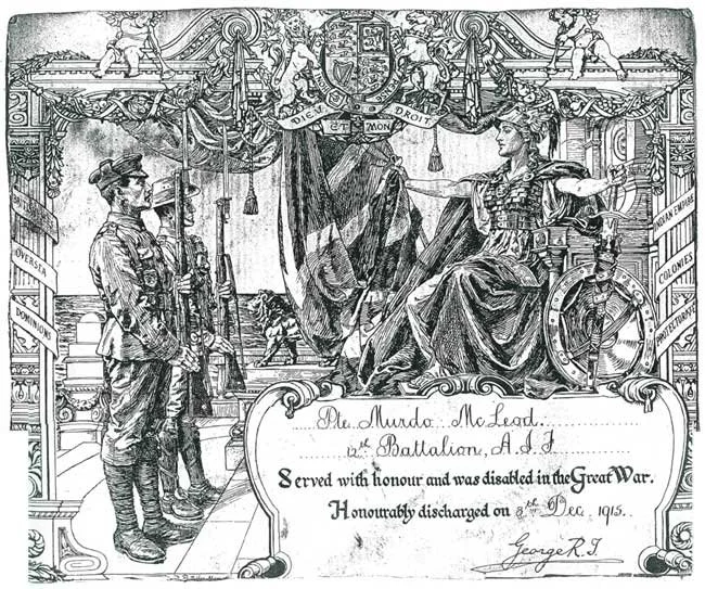 Murdo Macleod was entitled to wear Two ‘Wound Stripes’ on the left forearm sleeve of his tunic, and was later awarded the 1914/15 Star Medal, British War Medal and Victory Medal which were sent to him by Base Records Melbourne. From 336,931 Australians who embarked for overseas service (excluding the RAN), there were 155,133 ‘woundings’ (including gassing and shell-shock). There were 5,583 Australian soldiers wounded three times, 807 four times, 105 five times and 10 six times. One soldier is recorded as having been wounded seven times.