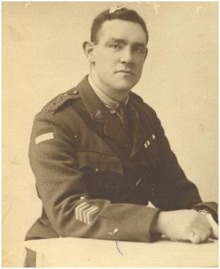 He accompanied the B attalion to Egypt on the Seeang Bee, and subsequently to France on the Saxonia. In the Pozieres attack in July 1916 he was Acting Company Sergeant Major, and then reverted to the rank of Sergeant, and in the Mouquet Farm attack of 1923 August 1916 he distinguished himself by directing a lost platoon, for which he was awarded the DCM