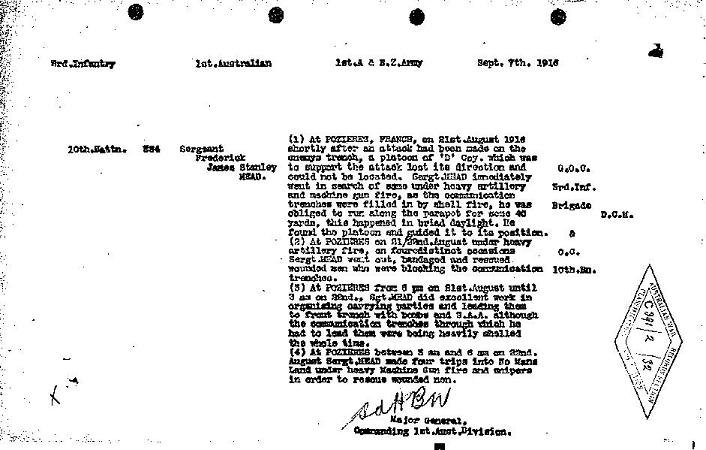 Lt Frederick James Stanley Mead MC DCM from Semaphore, South Australia (later promoted Captain).