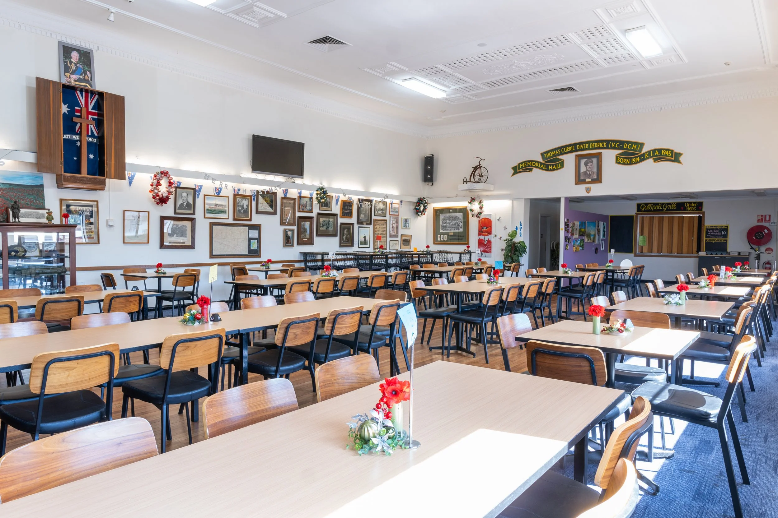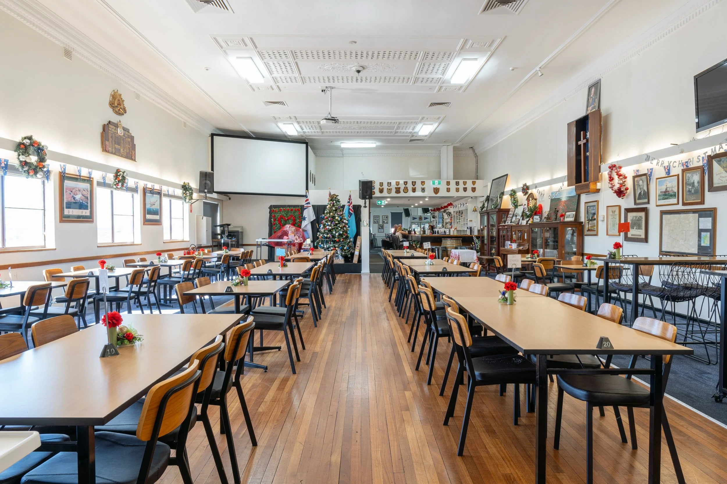 The club’s maximum capacity is up to 210 people; this capacity is dependent on the type of function held and is divided between the Thomas Currie “Diver” Derrick Memorial Hall and the front bar. Depending on your requirements, the venue can be partially or exclusively hired.